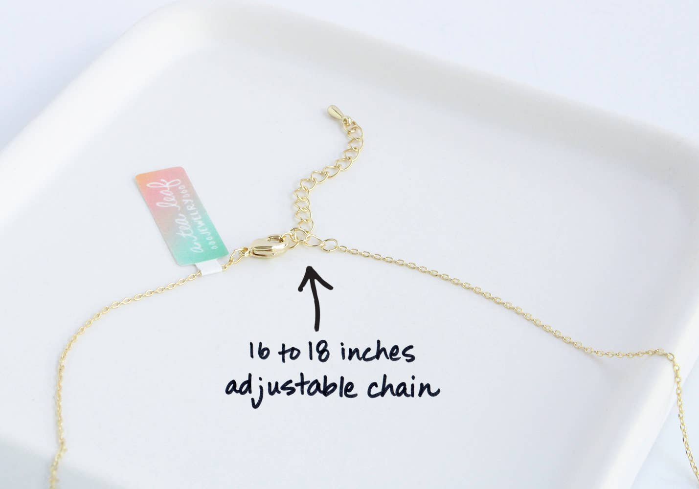 Featuring featherweight pendant that hangs from a delicate chain that's adjustable from 16 to 18". Nickel free & lead free. Necklace comes with a A Tea Leaf sticker tag.