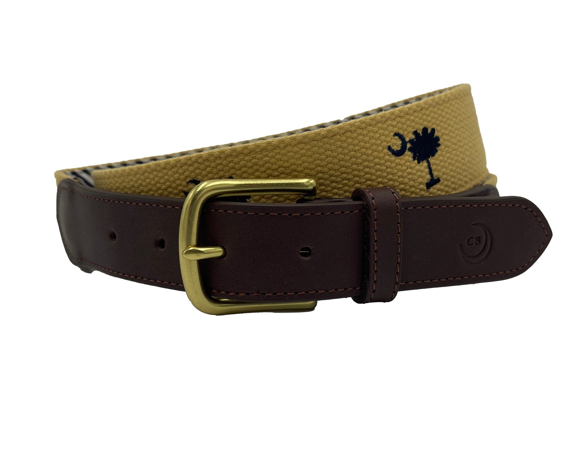 SC State Flag Palmetto Moon Belt Beige Navy Blue Embroidered Woven Web Award Winning Design